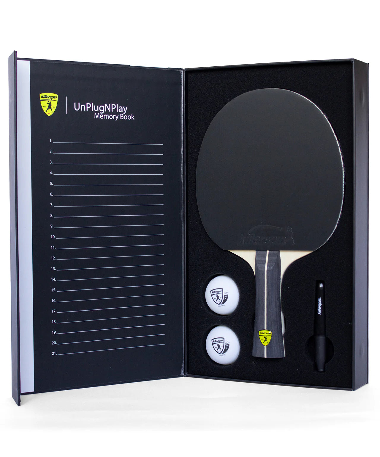 Each Impact D2 paddle comes in the Killerspin Memory Book Case, designed to protect and elegantly showcase your paddle. This stylish case also provides space to preserve personal memories, such as match scores and player signatures. It’s perfect as a gift or as a personal keepsake. This box also comes with two ping pong balls.